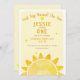 Celebre o grande dia de sua pequena luz do sol com este animado convite de aniversário "Primeira Viagem ao Sol", que inclui um sol de cor d'água pintado à mão e estrelas lúcidas. Projetado em tons amarelos quentes, este convite de um tipo é perfeito para uma primeira festa de aniversário ensolarada. Personalize com o nome, a idade e os detalhes da festa do seu filho, para que os hóspedes adorem. Ideal para aniversários de primavera e verão, celebrações neutras de gênero ou um partido temático.