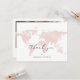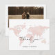 Este cartões de agradecimentos apresenta um mapa de cor-d-água cor-de-rosa-claro e uma fonte de script elegante. Este cartão é perfeito para o seu casamento de viagem ou destino, chá de fraldas, chá de panela ou qualquer outro evento. Adicione facilmente uma mensagem especial no verso e mude a foto para o seu toque exclusivo.
