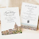 Este convite de aniversário e modelo de itinerário apresenta uma pintura aquosa de San Miguel de Allende, linha do horizonte do México e um itinerário de trás. Edite facilmente a maioria dos textos para corresponder ao seu evento.