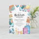 Convites de festa de despedida de solteira fofos para viagem com uma seleção de itens de viagem em aquarela, incluindo malas, câmera, mapa, etc., e um modelo de festa de despedida de solteira elegante e fácil de personalizar.