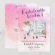 Fim de semana de despedida de solteira! Este convite de despedida de solteira em aquarela é fácil de personalizar aqui na Zazzle, e então fazer o download para um convite instantâneo ou encomendar impressões. Substitua qualquer um dos textos. Apresenta um toque de cor rosa e uma mala cheia de roupas para um fim de semana fora.