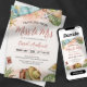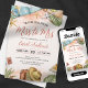 Esta viagem tropical da senhorita à Sra. chá de panela é a maneira perfeita de celebrar o seu próximo casamento! Apresentando uma bela ilustração aquática de uma cena tropical com mala e chapéu, este convite é certamente para dar o tom a uma celebração divertida e festiva.
