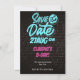 Este aniversário vibrante salve a data card apresenta um tema de neon atraente com cores azuis e cor-de-rosa brilhantes contra um fundo de tijolos na moda preto. O cartão usa fontes ousadas e lúdicas para criar uma atmosfera divertida e viva, perfeita para celebrar um aniversário especial. O design moderno e o estilo enérgico garantem que esse partido será aquele a se lembrar.