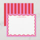 A bold and modern note card featuring a vibrant pink and red color palette and a playful wavy border frame. The crisp white writing space keeps your message clear and easy to read, while the bright, contrasting colors add a fun and stylish touch. Perfect for everyday notes, thank-you cards, or personal correspondence. The striped back adds extra character and can be customized to any color you prefer. You can also remove the stripes entirely and switch to a solid background in any shade that fits your personal style.