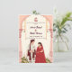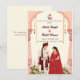 "Celebre uma união de tradições com este deslumbrante convite de casamento inspirado na Índia. Este design apresenta intrincados padrões de Mandala e motivos de paisley que refletem a rica herança cultural do subcontinente. Contra um fundo profundo e realçado com detalhes dourados cintilantes, o layout captura o espírito festivo de um Grande Casamento Indiano Gordo. Com uma mistura de estética tradicional e luxo moderno, este convite é uma majestosa homenagem a uma história de amor atemporal."