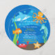 Um adorável convite para chás de fraldas que é o tema de Sob o Mar. O design é fofo e divertido com cores vibrantes como azul, laranja, vermelho e verde. A vida marinha inclui polvo, tubarão, peixe, caranguejo, estrelas e cavalo marinho. Também funciona bem para uma festa de aniversário de criança.