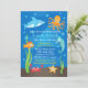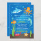 Um adorável convite para chás de fraldas que é o tema de Sob o Mar. O design é fofo e divertido com cores vibrantes como azul, laranja, vermelho e verde. A vida marinha inclui polvo, tubarão, peixe, caranguejo, estrelas e cavalo marinho. Também funciona bem para uma festa de aniversário de criança.