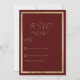 Mínima elegante Burgundy moderna e convite de RSVP de Casamento de Ouro. Este convite para ouro de luxo e festa de casamento de burlões é perfeito para qualquer evento clássico e sofisticado. Este design minimalista é perfeito para um evento de tendências e na moda. Personalize este design com sua própria mensagem e informações personalizadas. Todas as designs são impressas.