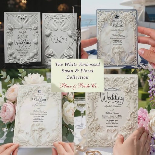 Convites Victorian Faux Embossed Swan & Rose Wedding