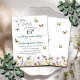 Um convite elegante para o aniversário do casamento verde com flores silvestres e borboletas coloridas que você pode personalizar adicionando seus detalhes.