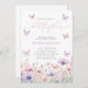 Aqui vai uma vida inteira de borboletas! | Um bonito design de flor silvestre para o seu Chá de panela temático de borboleta. Perfeito para um chá com tema floral de borboleta com detalhes pastel cor-de-rosa e roxo.