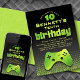 Seu jogador nivelou! Este design de aniversário de jogos tem estilo de pixel digital e um controlador de console para definir o palco para uma celebração de excelente. O esquema de cores verde e preto e as fontes do estilo digital são perfeitos para os jogadores de qualquer idade. Faça o download da sua cópia digital hoje mesmo para que você comece no melhor aniversário de todos os tempos!