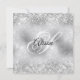 Uma comemoração de aniversário de 60 e Fabulosa, com um glame feminino, convida-a a apresentar uma falso cintilação prateada e uma arte digital de vidro fosco prateado. Personalize o estilo da letra da caligrafia no monograma do rico preto e branco no verso, ou o estilo moderno de fonte de todos os bonés na frente. Todos os elementos brilhantes, brilhantes e brilhantes nesta design moderna são gráficos de arte digital que irão gostar de impressão como uma foto. Icy, cor de inverno gelado para sua elegante festa de festa de aniversário de dezembro. Convite de tamanho quadrado com uma imagem achatada criada de vários designs. As brilhas, faíscas e elementos de vidro fosco são a arte digital que impressão gosta de uma foto.