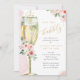 Este bonito design apresenta um buquê floral em tons de rosa e um copo de champanhe de aquarela. Preencha suas informações sobre o modelo. Use o recurso "personalizar" para alterar as fontes ou o layout.