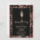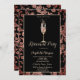 Vidro de champanhe elegante e espirais brilhantes sobre fundo preto.