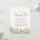 Uma bela borda floral de aquarela de margaridas e outras flores silvestres amarelas e roxas decora borda inferior deste convite ao chá de fraldas. As palavras "Sip and See" aparecem no elegante roteiro de escrita manual de cinzas de carvão. Personalize o resto do texto com o nome do novo bebê, data, local e detalhes de RSVP. Ideal para primavera, verão ou queda de chá.