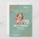 Convite Fotográfico de 70 de Festa de aniversário de Vidro Vermelho. convite de aniversário com 70 de vinho tinto de cor aquosa e uvas. Nos cantos está a falsa reluz dourada. Adicione sua foto e personalize todo o texto. Você pode apagar o texto Surpresa.