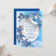 Flores-lua brancas, ilustradas e lúcidas, com pássaros e folhas azul-esverdeadas sobre um fundo azul florado gravado sobre uma imagem criativa e enrolada de papel para personalizar.