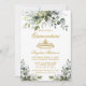 O Cartão de Convite para Quinceañera para Casamento Biológico Elegante Moderno Cinzento Botânico de Cor Marinha Elegante inclui folhas de eucalipto, folhagem botânica verde, folhas azuis empoeiradas e outros belos lençóis botânicos.
