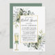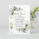 A placa de Chá de panela verde botânico moderno Elegante para aquarelas inclui folhas de eucalipto, folhagem botânica verde, folhas azuis empoeiradas e outro belo verde botânico. Script de caligrafia de tendências. Sage Green Back. Dourado quadro. Vidro de Champanhe de Aquarela com Arco.