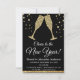 Festa de Ano Novo de 2024: Dourado Vidro de Champanhe de Diamante aplaude o Convite de festas de Ano Novo. O Convite de festas Dourado e negro da véspera de Ano Novo é perfeito para um moderno Partido da Véspera de Ano Novo.