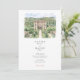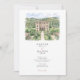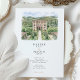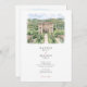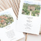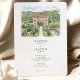 The coordinating back reveals an aerial view of the estate, highlighting the geometric parterre gardens, sweeping drive, cypress-lined avenues, and sparkling pool that make this venue so iconic. A “Finer Details” heading sits beneath the illustration, providing the perfect place for travel tips, directions, schedule notes, or website information. All wording is fully customizable, making this suite ideal for Tuscany weddings, Italian villa celebrations, or any European-inspired event that wants to spotlight its venue in a fine-art watercolor style.