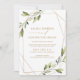 Convidações de Casamentos Geométricos de Greenery: Estes convites de casamento etéreos são perfeitos para um tema de casamento de moda! Este design apresenta contos de fadas como vinhas sobre uma estrutura geométrica moderna de folha de ouro falsa. Altere seu texto para torná-lo seu. Não quer texto dourado? Basta clicar no texto e mudá-lo para qualquer cor que você quiser! O verso deste convite apresenta uma coroa geométrica falsa de folha de ouro com suas iniciais e data do casamento.