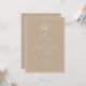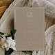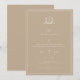Elegante crista botânica adornada de monograma, A Noite Antes, convite para comemoração de casamento/ensaio. Design de tipografia branca moderna e quic em fundos bege.