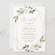 Convites de chá de panela de Vinhas Geométricas (Brancos): Estes convites de chá de panela apresentam um design geométrico de folha de ouro dobrado com um simples verde e um buquê floral de cor branca. Altere seu texto para torná-lo seu. Não quer texto dourado? Simplesmente mude para qualquer cor que você quiser!