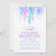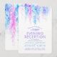 Flores de tipo castanho, flores de coloração de água botânica, pintura de arte, convites de recepção de casamento à noite. Linda arte floral, design de arte aquática solta, ideal para uma festa de casamento noturna em tons bonito de azul, roxo e rosa. © Original watercolor art e design por Sarah Trett www.sarahtrett.com para www.mylittleedenweddings.com