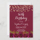 Convites Vinho Borgonha Floral Luzes 70 Aniversário