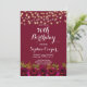Vermelho vermelho-burlu, rosas de aquarela de marsala, design de casamento com folhas verdes e lanternas em fundo de burlu. Apresenta um elegante design de tipografia manuscrita. Excelente de festa de aniversário para adultos para ela: 13 15 de 16º 18º 20 21rua 30 de 40º 50º 80 de 60º 70 de 100º ou em qualquer idade. Por favor, note que esta design é um efeito fotográfico impresso. 3348