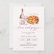 pizza chá de panela e convite de festas temático de vinho modernos e divertidos.
