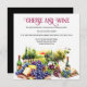 Uma bela e elegante ilustração de um vale cênico com colinas rolantes e árvores à distância do nascer do sol. No primeiro plano está um queijo e vinho abundantes, espalhados por pedaços de queijo amarelo, cachos de uva tinto e preto, garrafas de vinho, conselhos de madeira e folhas de vinha. A ilustração assenta sobre um fundo branco que tem modelos de texto editáveis negros e cor-de-borrão arrojados para sua redação personalizada. Este gráfico de ai é ideal para um coquetel de "queijo e vinho" ou para um evento de aniversário; aniversário, aposentadoria ou formatura. É extremamente versátil e pode ser aplicado a qualquer acontecimento ou ocasião especial.
