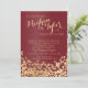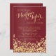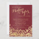 O convite de casamento do vinho tinto elegante com um borrão de pontos dourados para uma celebração espumante.