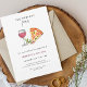 Convite simples e elegante para apresentação de festas de noivado de vinho e de pizza, com pizza aquosa pintada à mão e vinho.
