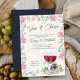 Convite à Festa de noivado da Noite do Vinho e Queijo, casual e elegante em design com ilustrações de aquarelas. O convite inclui copos de vinho tinto com queijo, uvas, rosas de pinheiro e guião manuscrito num quadro floral de rosas bonito cor-de-rosa e verde. Uma design romântica bonita para celebrar o casal feliz. Navegue na minha Coleção de Convites de Festa de noivado para obter mais opções.