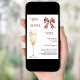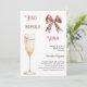 Um convite moderno, na moda e glamouroso para um Vino antes do Chá de panela Vows. Fundo branco com arco rosa, vidro com bolhas e pérolas. O nome é escrito com um moderno estilo escrito à mão. Personalize e adicione os detalhes da sua festa.