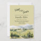 Vino antes do Chá de panela de vinhas apresenta uma adega de aquarelas e design de montanhas. Há espaço nas costas para a noiva e as iniciais do noivo numa balde de vinho.