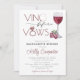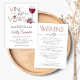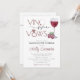 Este convite apresenta um copo de vinho tinto e cores. É perfeito para um final de semana Festa de solteira em Vineyard ou Winery.