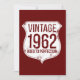 Celebrate the year 1962 with a design that says Vintage 1962 aged to perfection and is placed on a shield. This design looks really effective on these Invitations