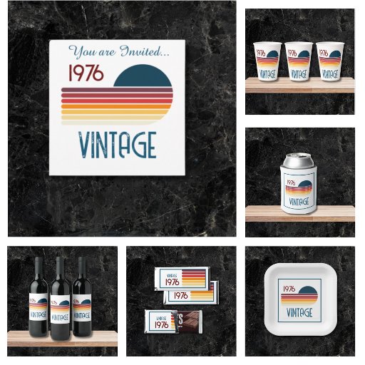 Convites Vintage 1976 Retro Stripe Sun 50th Birthday