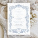 Vintage Barroco Floral Dusty Blue Quadro Cartão de Convite para Casamento