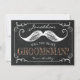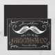 Cartão de padrinho em quadro-negro antigo com bigode clássico, letras em rosa dourado e uma borda vintage. Este convite personalizado fará com que seu amigo, irmão, primo, sobrinho, filho ou quem quer que você escolha se sinta ainda mais especial.
