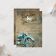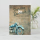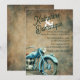 A unique wedding invitation with a vintage motorcycle with shades of blue and earth tones.