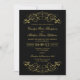 Uma trilha decorativa e floresce, esta elegante vintage inspirou design de convite para casamento. Esquema de cores preto e dourado. Personalize o texto personalizado para a sua cerimônia e recepção de casamentos.