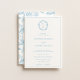 "Regency Era Monograma Light Blue Crest", convite para casamento. Vintage inspirou a crista do monograma barroco de arte de linha Regency-Era. Funcionalidades, uma elegante combinação de estilos de tipografia azul-clara, estilo design, e tipo a negrito. Padrão de jardim do estilo Chinoiserie de apoio.