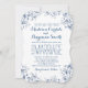 Vintage Elegante Blue Flourish Invtions Dois design. As costas têm o design florescente junto com a palavra "Amor". Fácil de editar modelo. Se precisar mover algo ou mudar a cor da fonte, basta usar o botão "Personalizar". A cor de fundo é branca com designs giratórios azuis elegantes. Itens de Correspondência: antigo, vintage, elegante, florescente, floral, barroco, convites para casamentos azuis, rolagem, toalhetes, floral, convites para casamentos azuis, convites para casamentos elegantes azuis, azul-vintage, azul-marinho