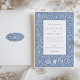Celebre seus futuros núpcias com um tom ao passado com este convite de casamento estilo William Morris, misturando charme de vintagem e elegância moderna. O intrincado padrão inspirado pelos designs icônicos de Morris é representado em vários tons de azul, variando de marinho a travessa, posicionado sobre um fundo branco nítido. Esse convite capta a essência do movimento Artes e Artesanatos, caracterizado por seus detalhados motivos botânicos e folhagem entrelaçada. Papel de alta qualidade dá ao convite uma textura luxuosa, e a fonte clássica adiciona um toque de sofisticação, fazer o anúncio perfeito para seu dia especial.