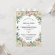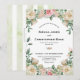 Entre na elegância do eterno com este convite de casamento inspirado no vintage, projetado para evocar o encanto de uma celebração clássica de primavera. Flores de aquarela suaves, cor-de-rosa pincelado e rosa cremoso, misturam-se lindamente com verde delicado, criando um olhar romântico e refrescante. O fundo do marfim adiciona um toque de sofisticação, enquanto os elementos retrorreflectores lhe dão uma sensação nostálgica. Perfeito para um casamento de primavera, este convite é um reflexo adorável de amor, natureza e beleza eterno.